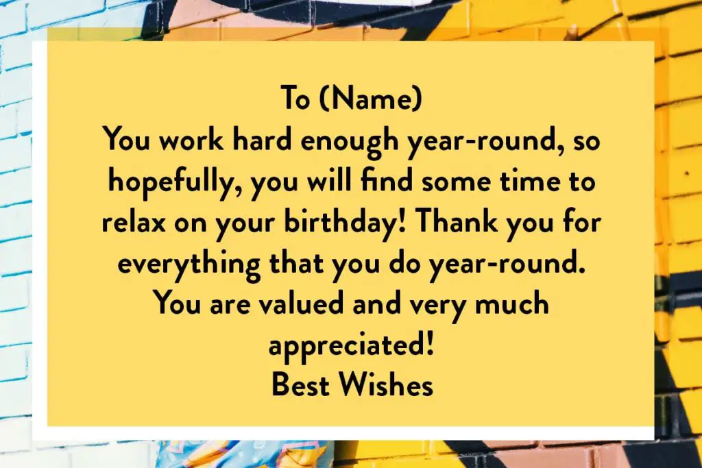 You can start by wishing them a happy birthday and expressing your appreciation for working with them.